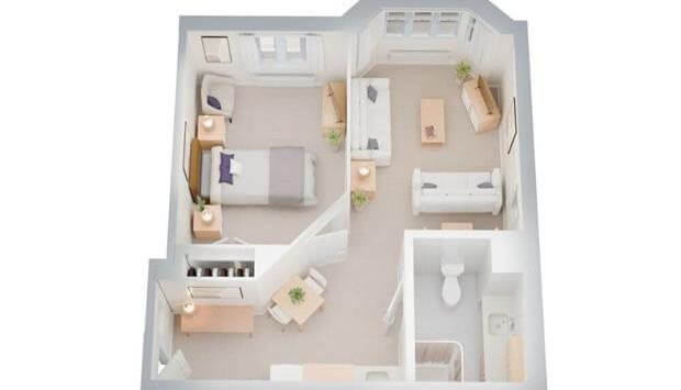 For older people who enjoy independent activities such as reading or crafting in the comfort of their own room, the Large Studio Suite offers a relaxing oasis.